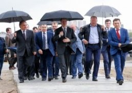 Осмотрев строящийся объект, В. Мутко, министр спорта РФ, отметил, что подготовка стадиона идет успешно и в соответствии с заявленным планом. Будущей зимой к зданию будет подведено тепло и строители приступят к отделочным работам.